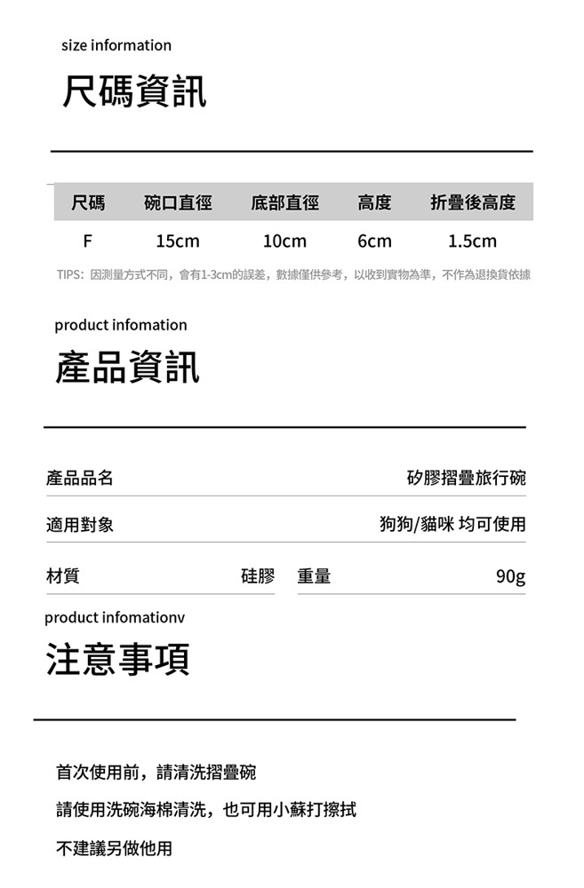 注意:使用前請清洗摺疊碗,用洗碗海綿清洗