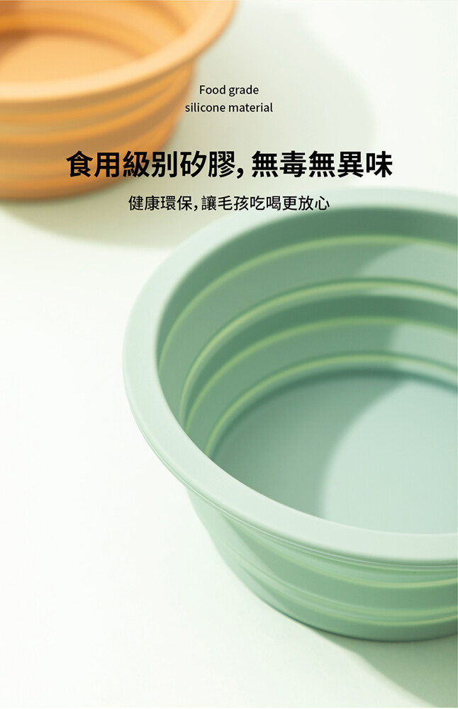 食品級矽膠,無毒無異味 ,大容量滿足日常需求 、輕巧、可折疊好收納 、經久耐用。