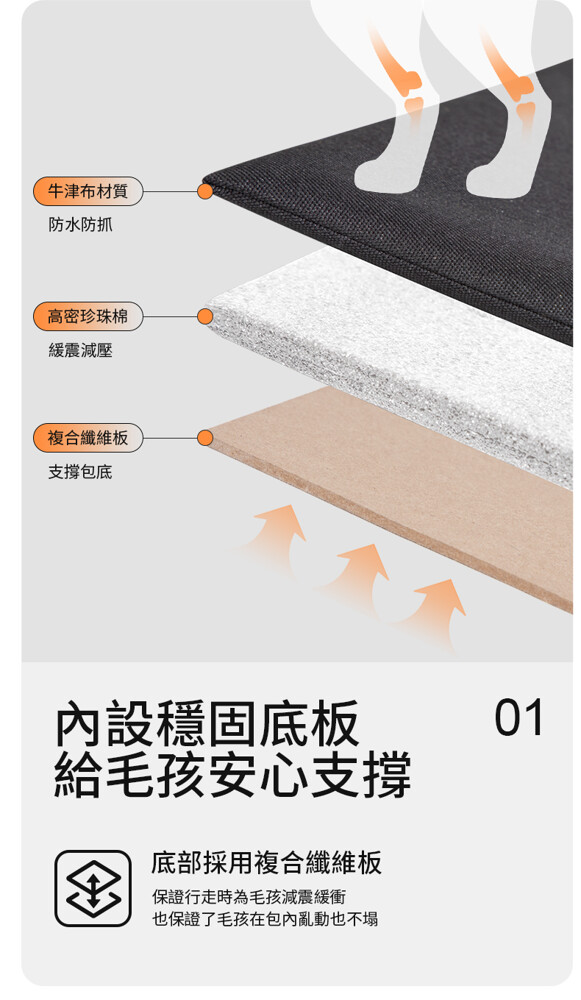 ●防水防抓、內置龍骨支架不軟不塌,穩固底板緩衝減震
