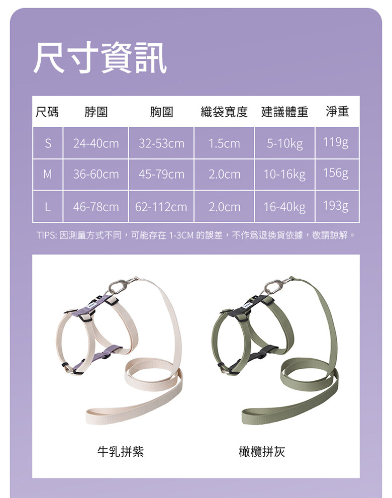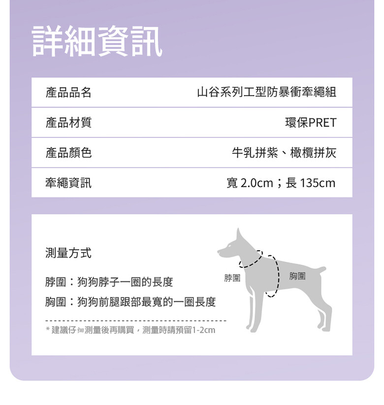 S號牽繩資訊 : 寬2.0 cm﹔長135 cm