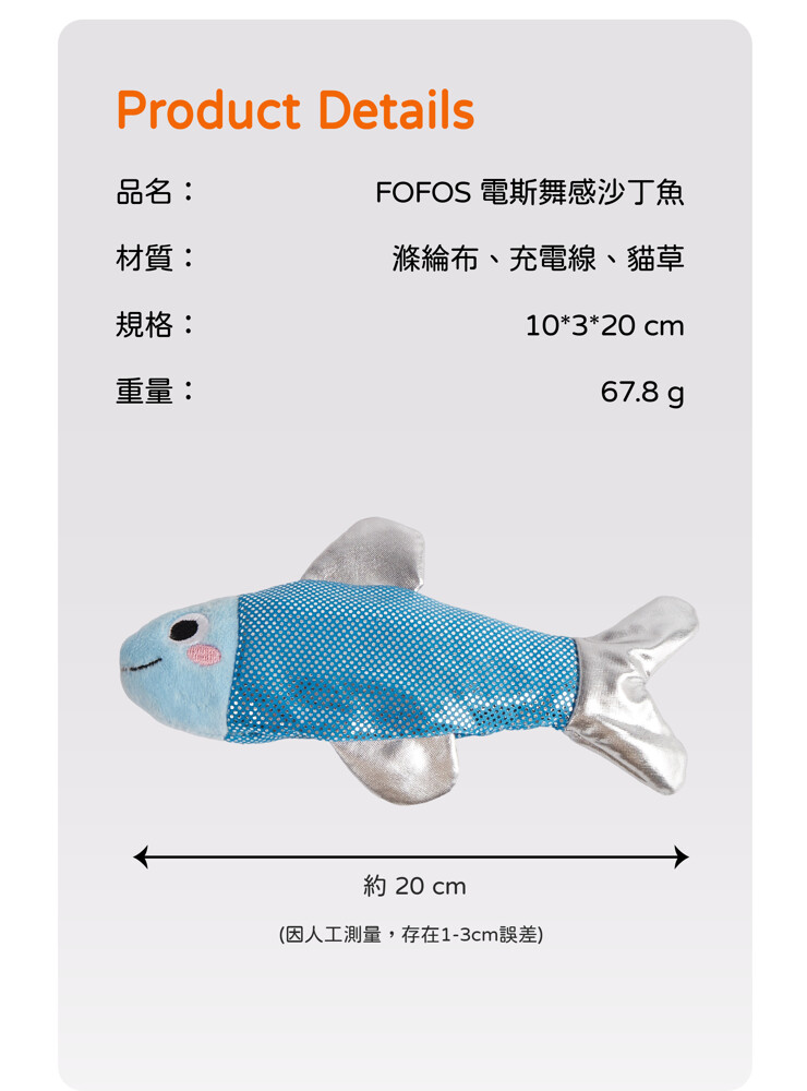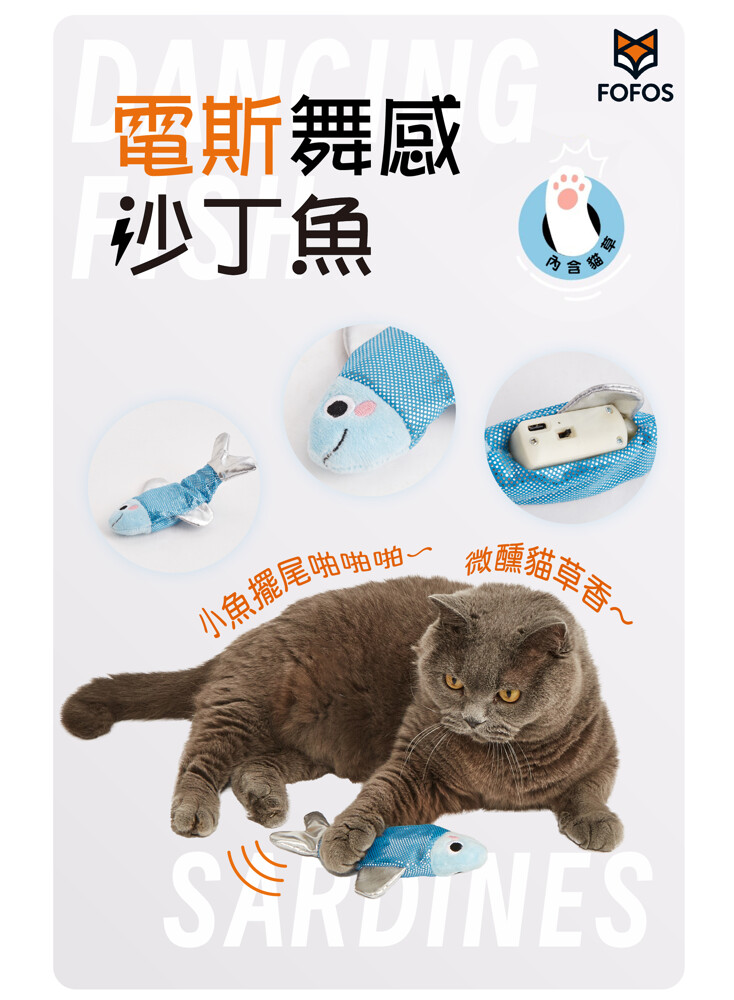 FOFOS兩只福狸 電絲舞感沙丁魚寵物玩具