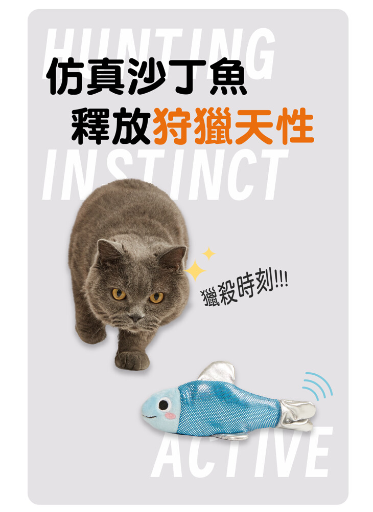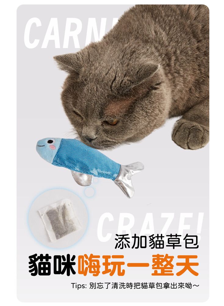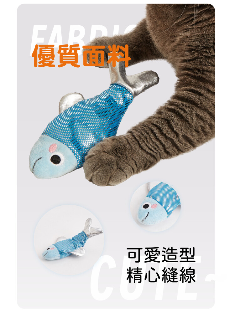 ●仿真魚造型+觸感布料,陪伴玩耍,減壓消耗精力