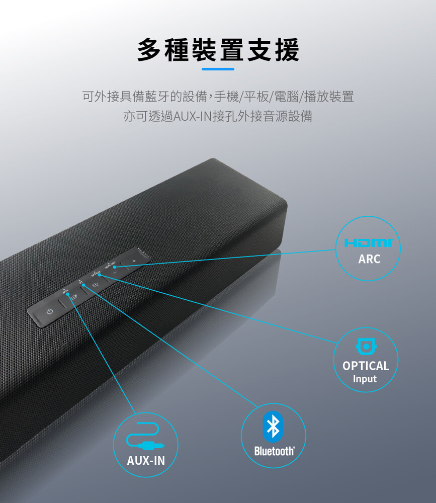 • 可外接具備藍牙的設備,手機/平板/電腦/播放裝置