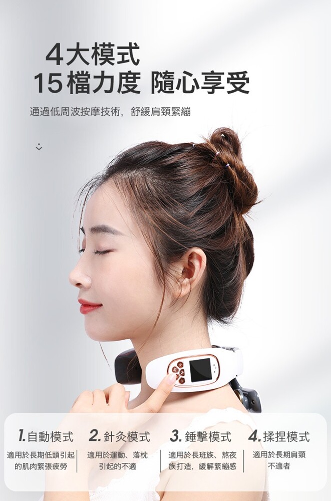 👍4種按摩模式可隨心調整,15檔強度調節,適合不同人的頸椎