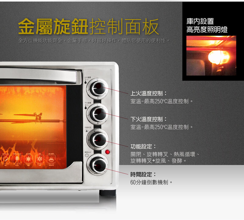● 配備8根發熱管設計,爐內溫度更均衡。