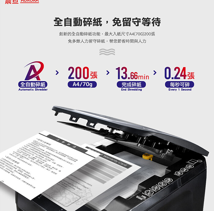 ● 自動每次最多入紙張數:200張(紙張厚度70G)