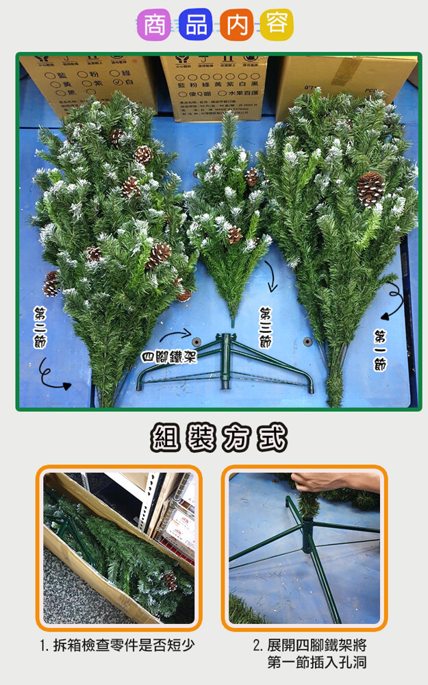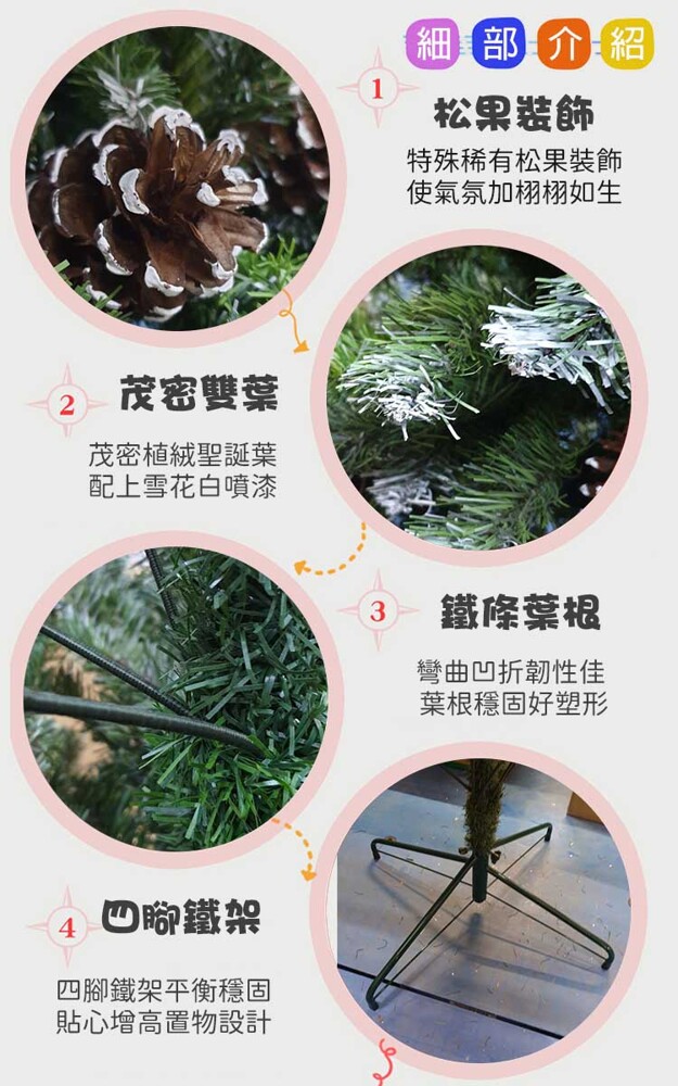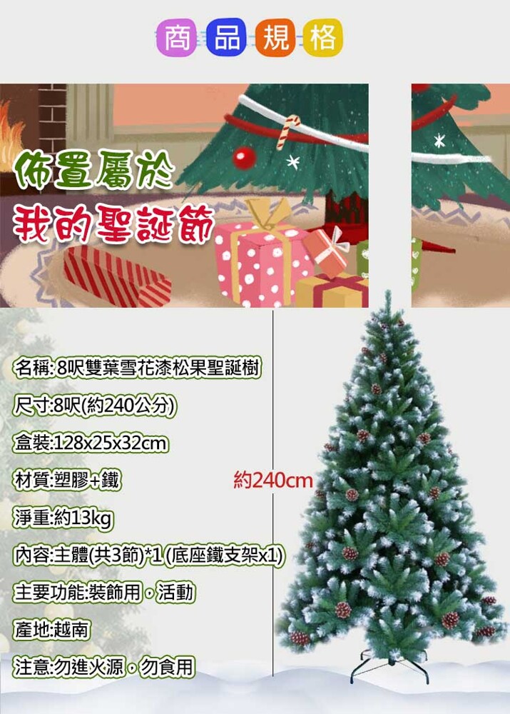名稱:8呎雙葉雪花漆松果聖誕樹(CTA0038)