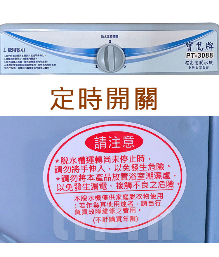 寶島牌 10公斤不鏽鋼內槽脫水機 PT-3088~含運僅配送一樓