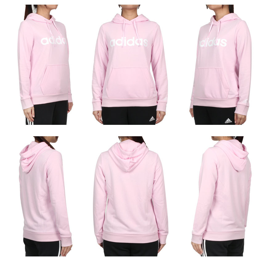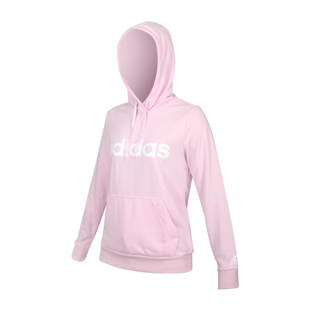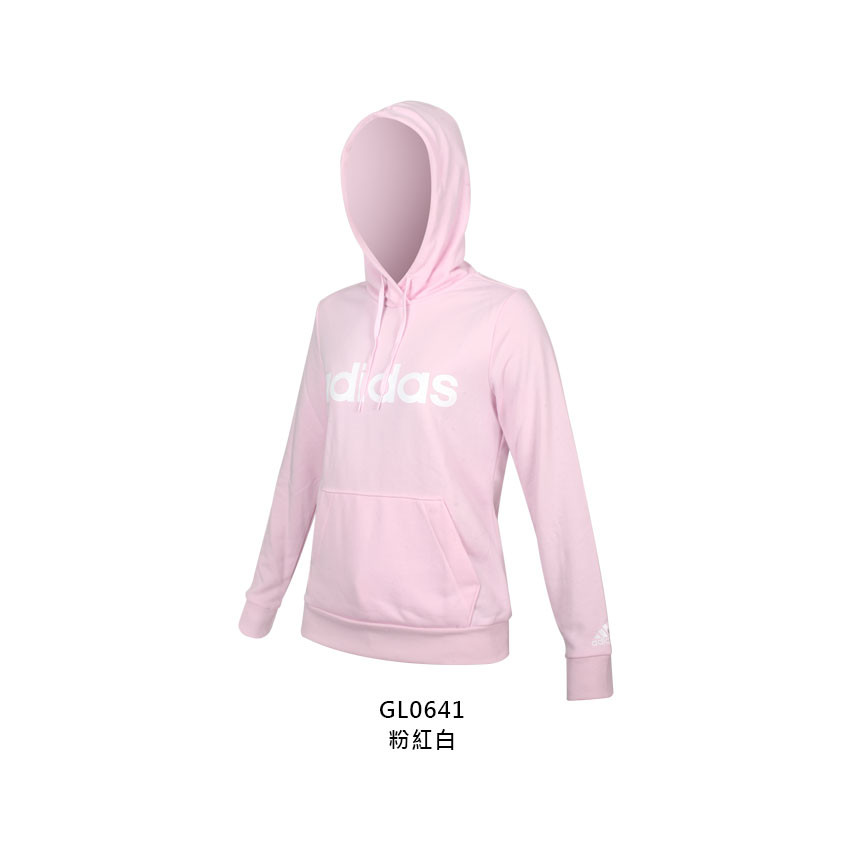 ADIDAS 女長袖連帽T恤-亞規 圈毛 帽T 休閒 上衣 愛迪達 粉紅白