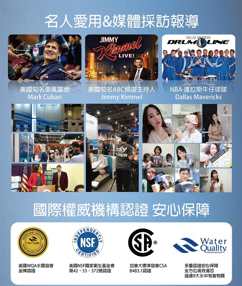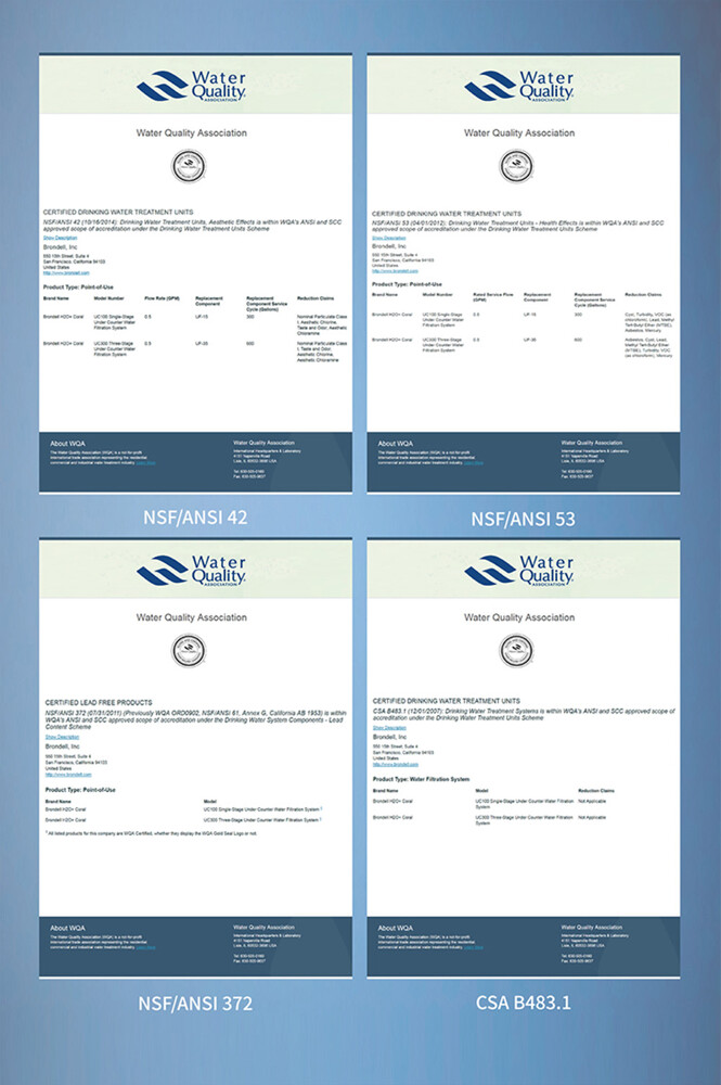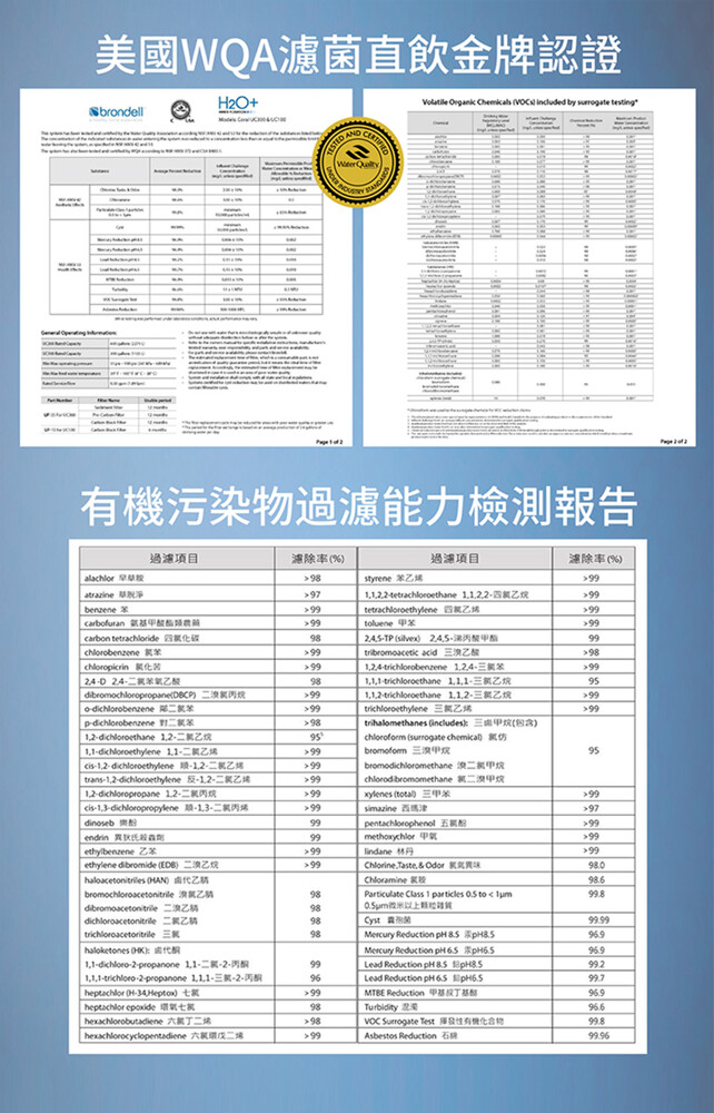 ❤ 美國WQA、NSF 42、53、372、加拿大CSA B483.1等國際權威機構多項認證