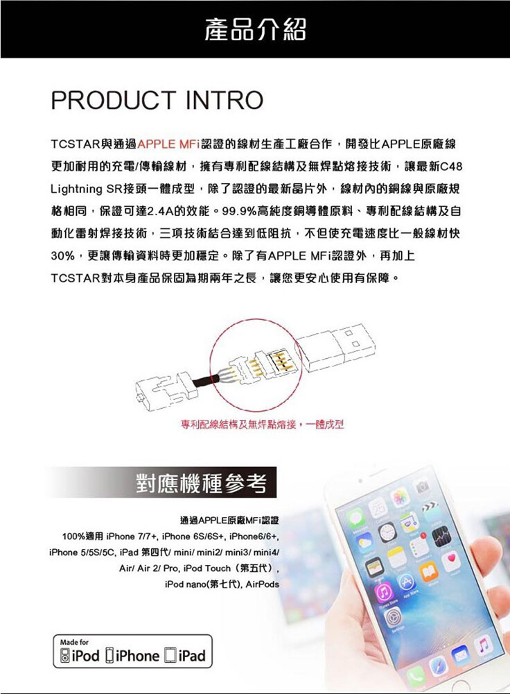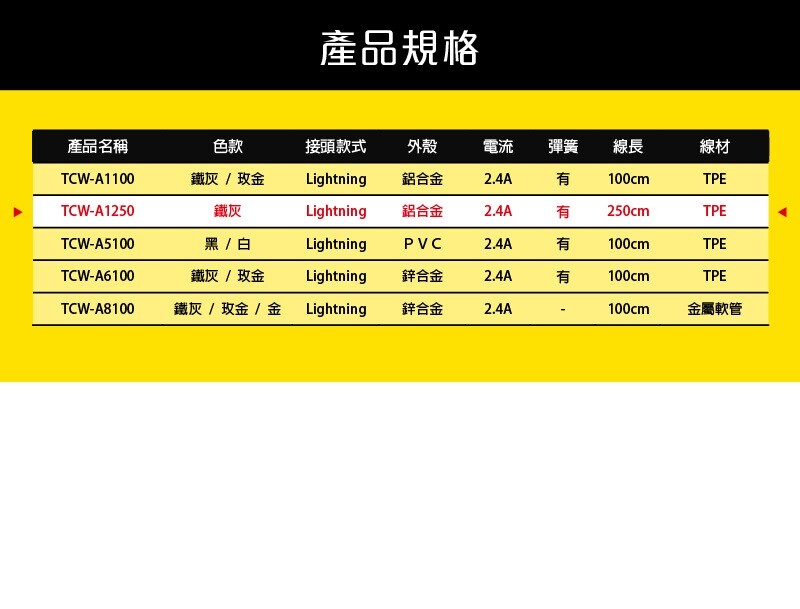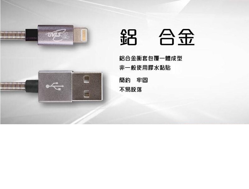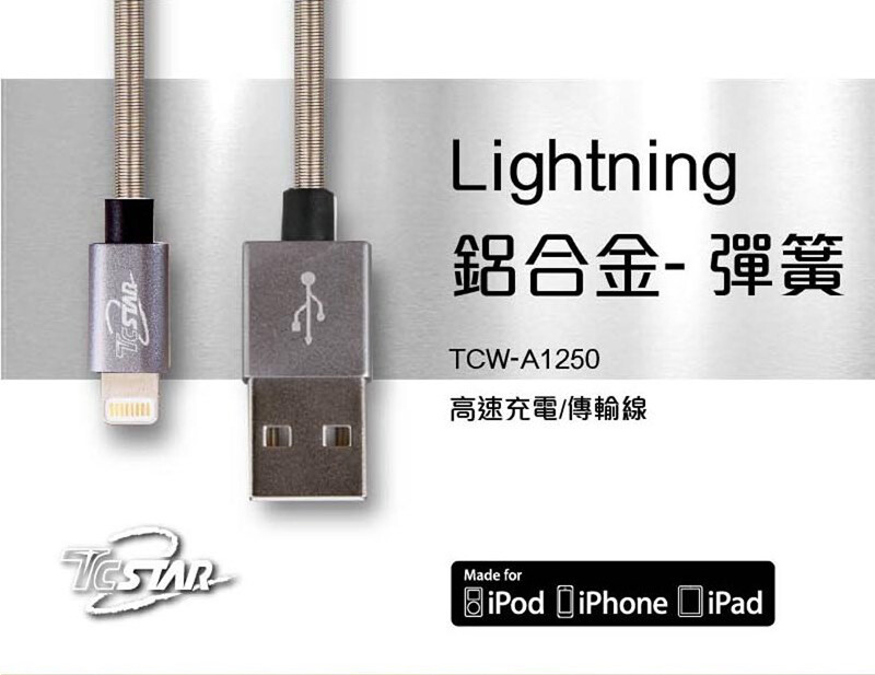 TCSTAR mfi 認証 鋁合金Lightning彈簧充電傳輸線250cm/鐵灰 TCW-A125