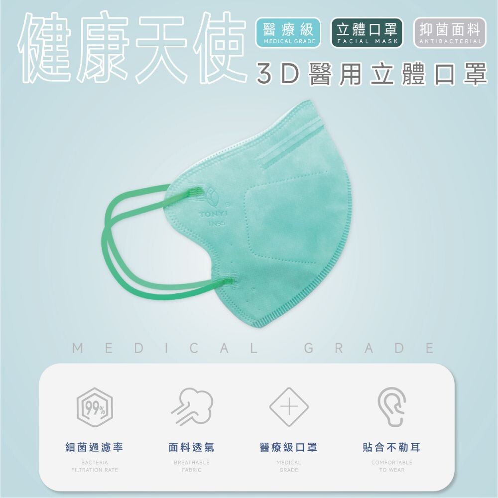 【健康天使】MIT醫用3D立體大兒童寬耳繩口罩 7~12歲 (鬆緊帶) 30入/袋 (小臉女適用)