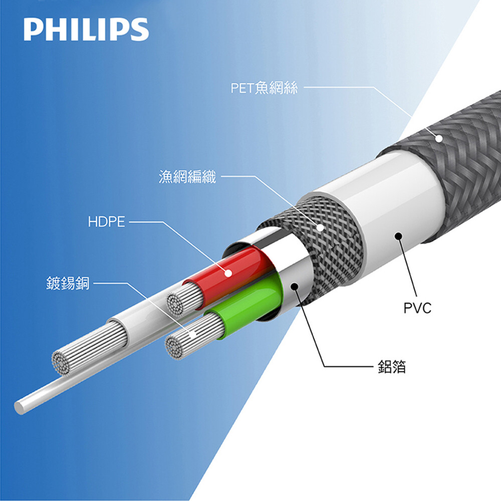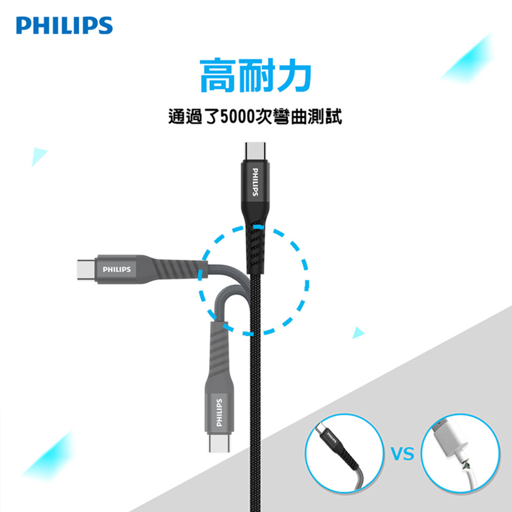 【PHILIPS 飛利浦】Type C手機充電線125cm 黑 線材(DLC4550A)