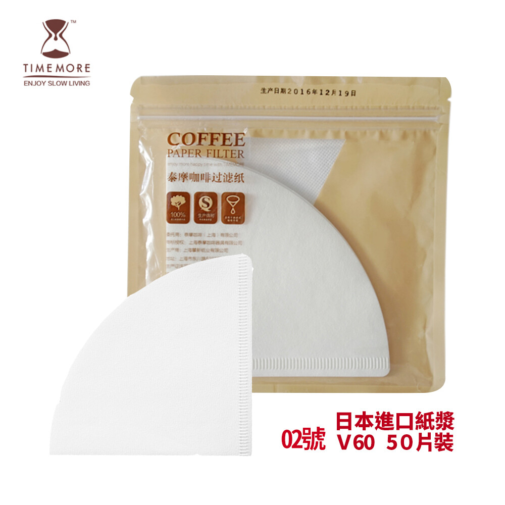 TIMEMORE泰摩 淨白型咖啡濾紙-50張(02號 V形濾紙) 尺寸:00號方形濾紙-9.6cm, 8.8cm