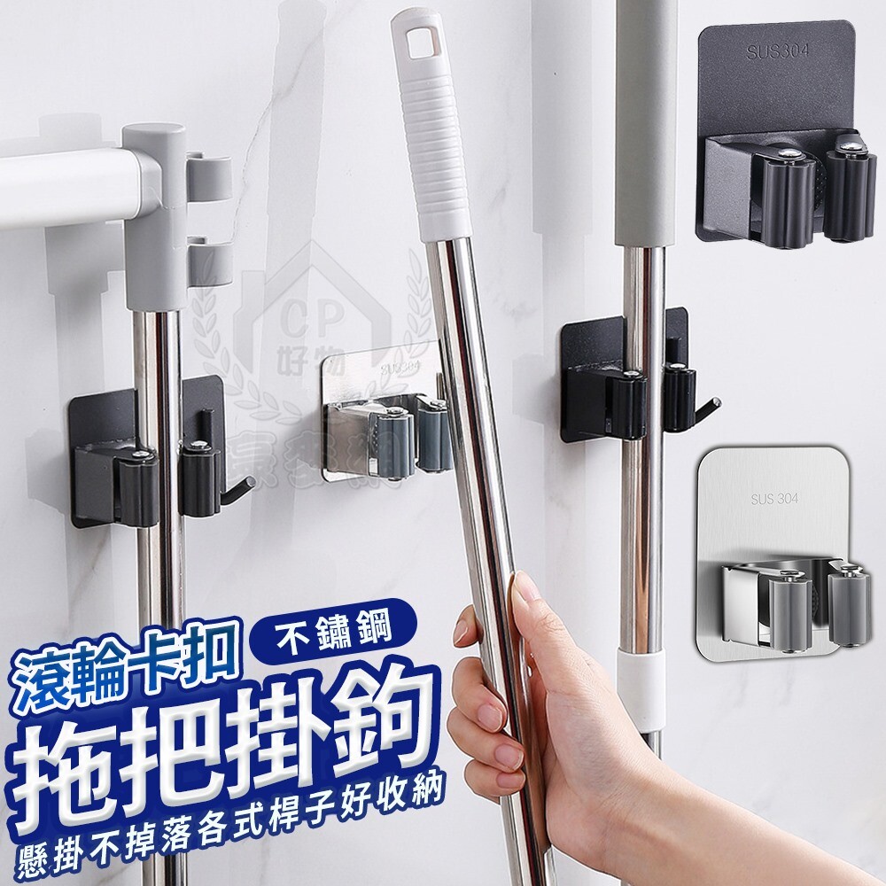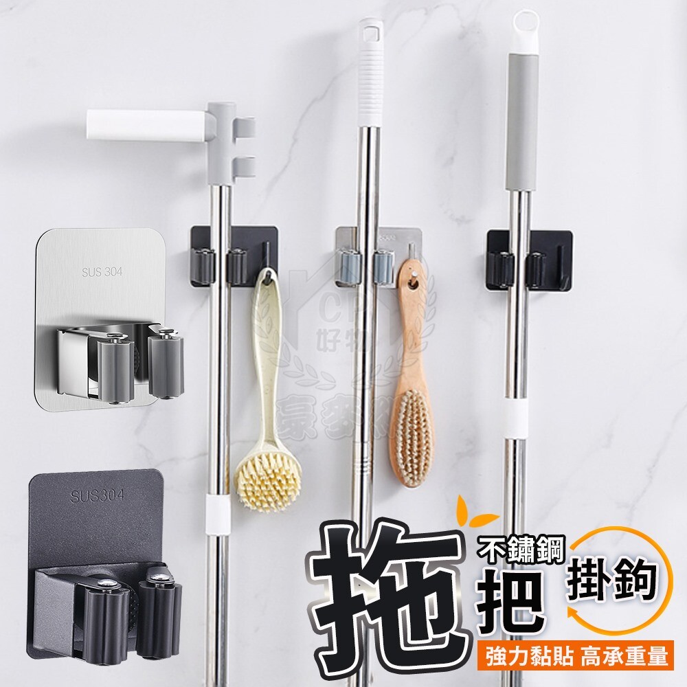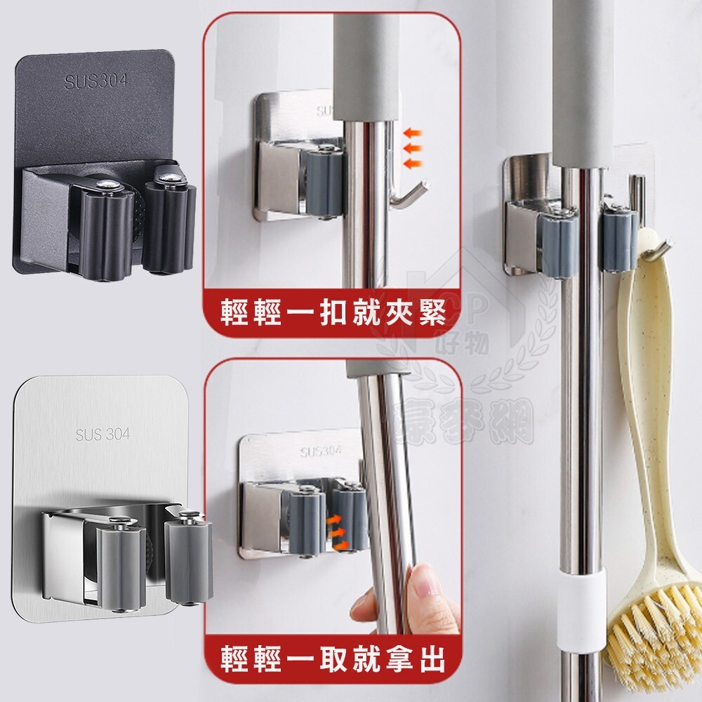 【不鏽鋼拖把架】免釘免鑽黏貼式拖把夾 壁掛掃把夾 雨傘架 掛勾架 ☆