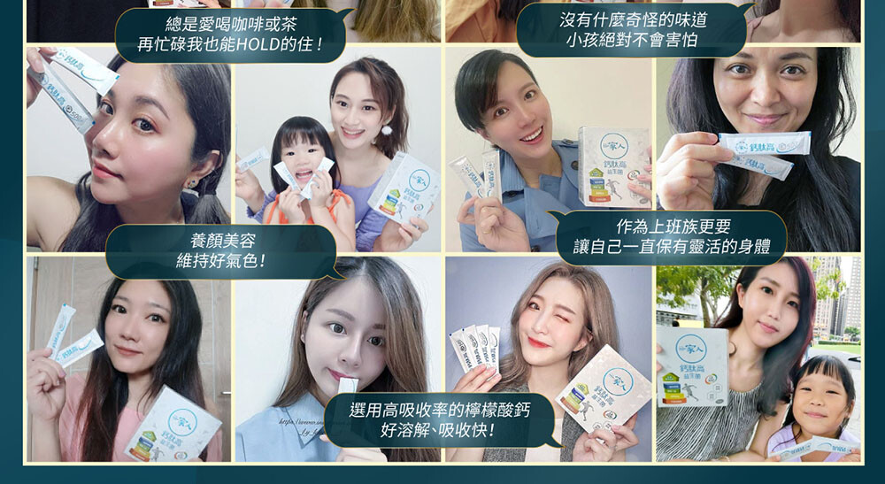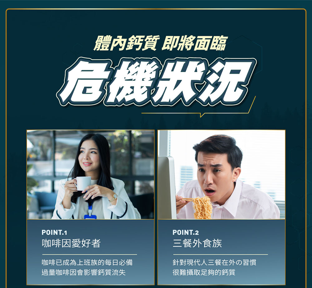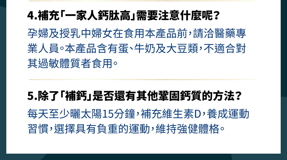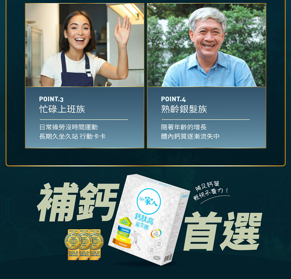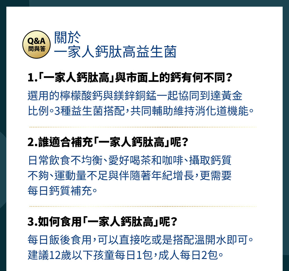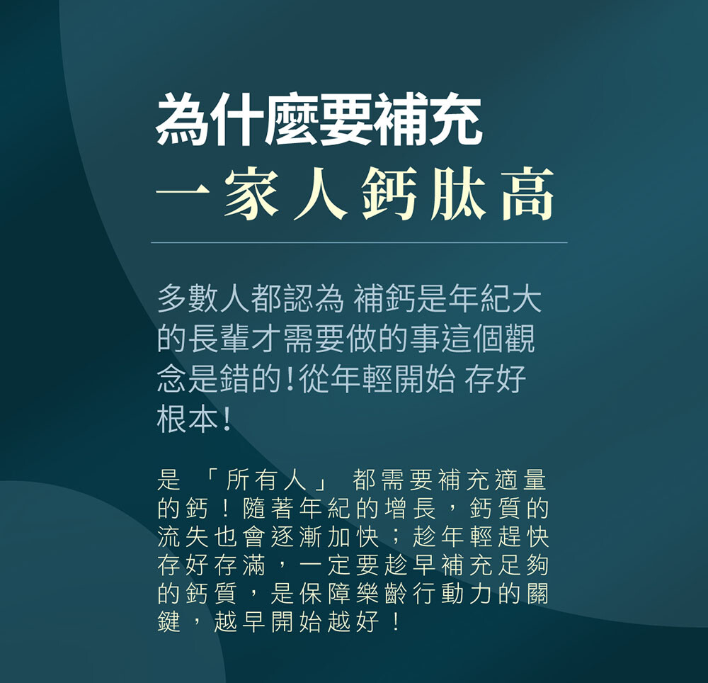 促鈣吸收500mg、三種有益菌株、三種特殊胜肽、六種黃金比例元素