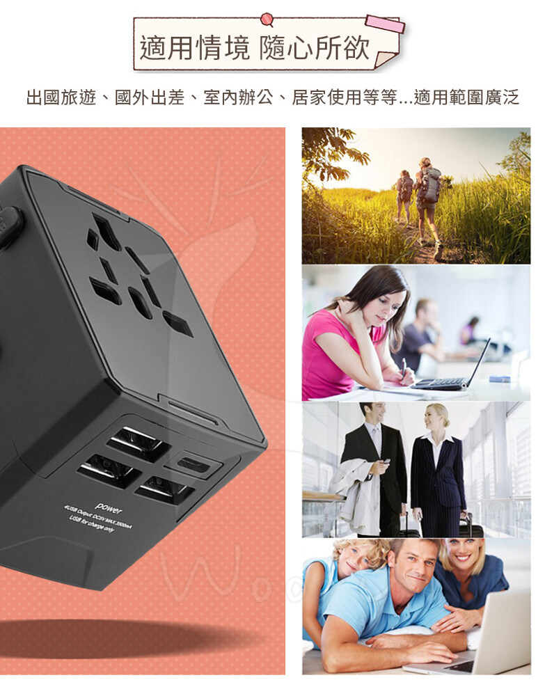 。多合一設計,只要輕鬆向上推便可轉換四種國際規格,不用再像傳統的轉接頭還要自行組裝
