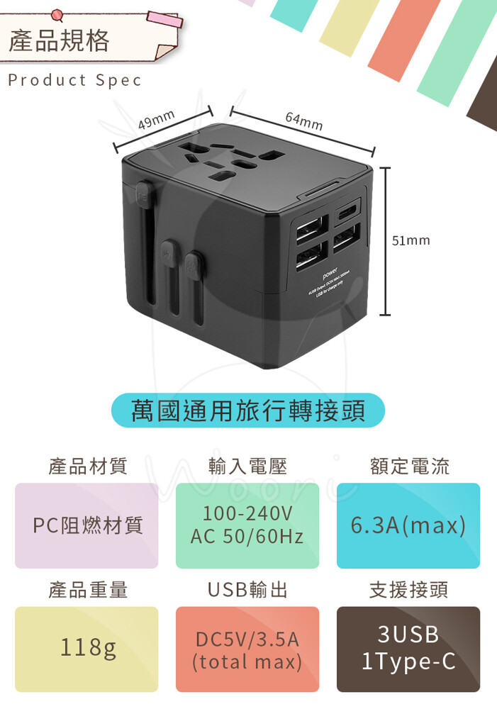 配件: 萬用旅行轉接頭*1、說明書*1