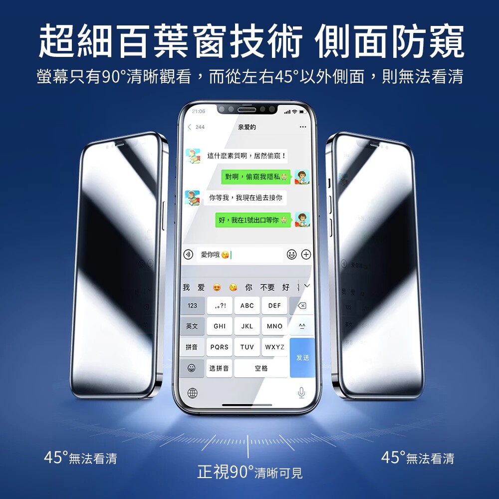◆ 防窺功能,傾斜超過45°斜角度看不清手機螢幕,保護隱私