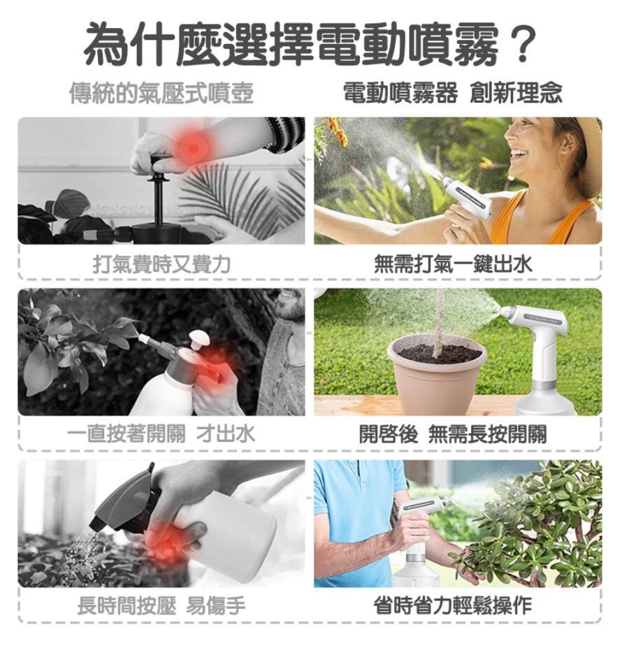 ✅電動噴霧 告別傳統式氣壓噴壺 解放您的雙手