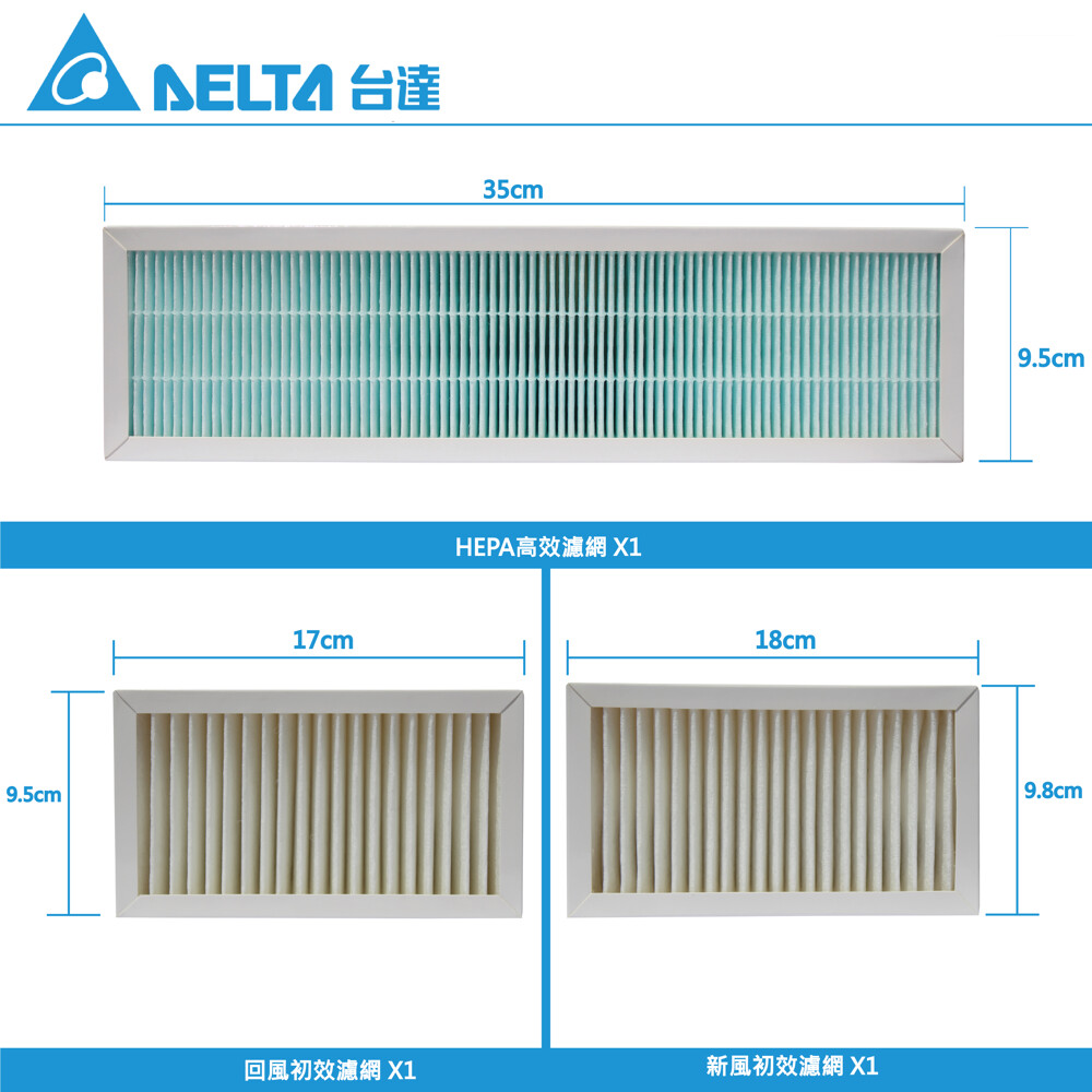 新風初效濾網(VFRU-ERVW-01PF)X1片: 過濾大顆粒髒汙灰塵、蚊蟲、毛髮等。