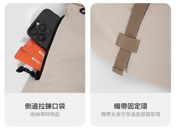 夠寬敞立體,底部防塌織帶支撐性UP,抽繩拉緊可防逃。