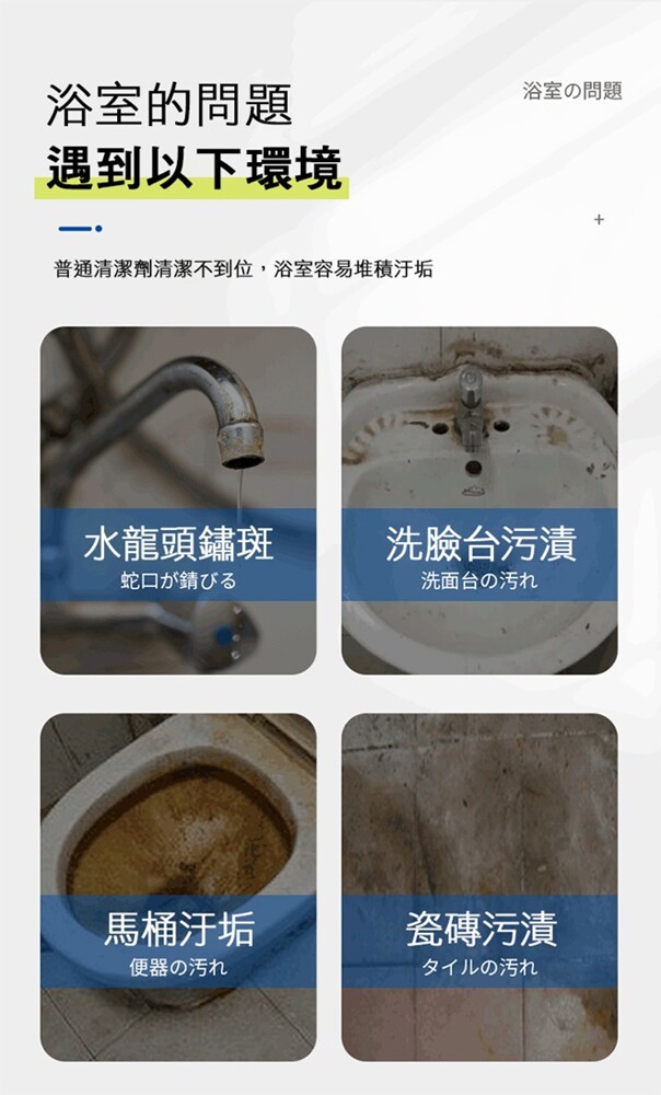 適用於:水龍頭、淋雨、馬桶、地板磚、浴室鏡面....