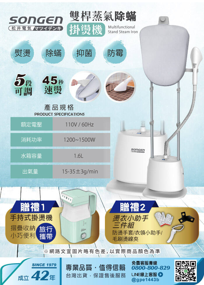 贈品:摺疊小方塊旅行手持掛燙機(薄荷綠)壹台