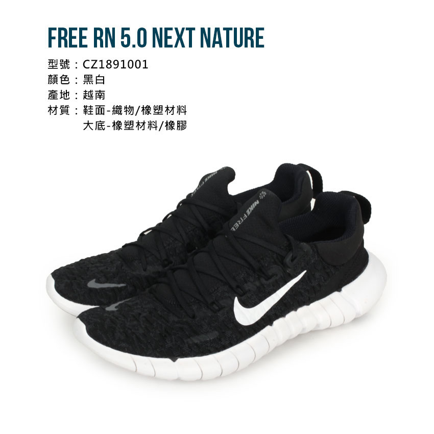 NIKE FREE RN 5.0 NEXT NATURE 男運動鞋-慢跑 訓練 黑白