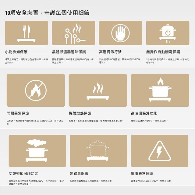 ❁火力段調整:(約)7段調整相當於150 W ~ 1400 W
