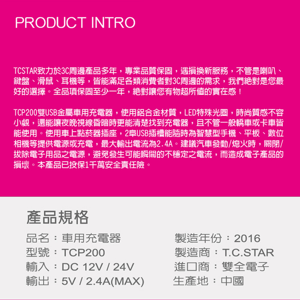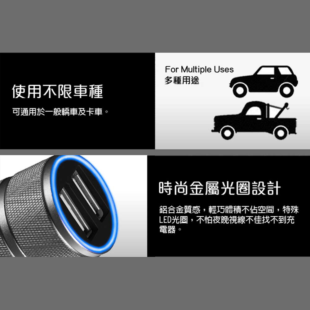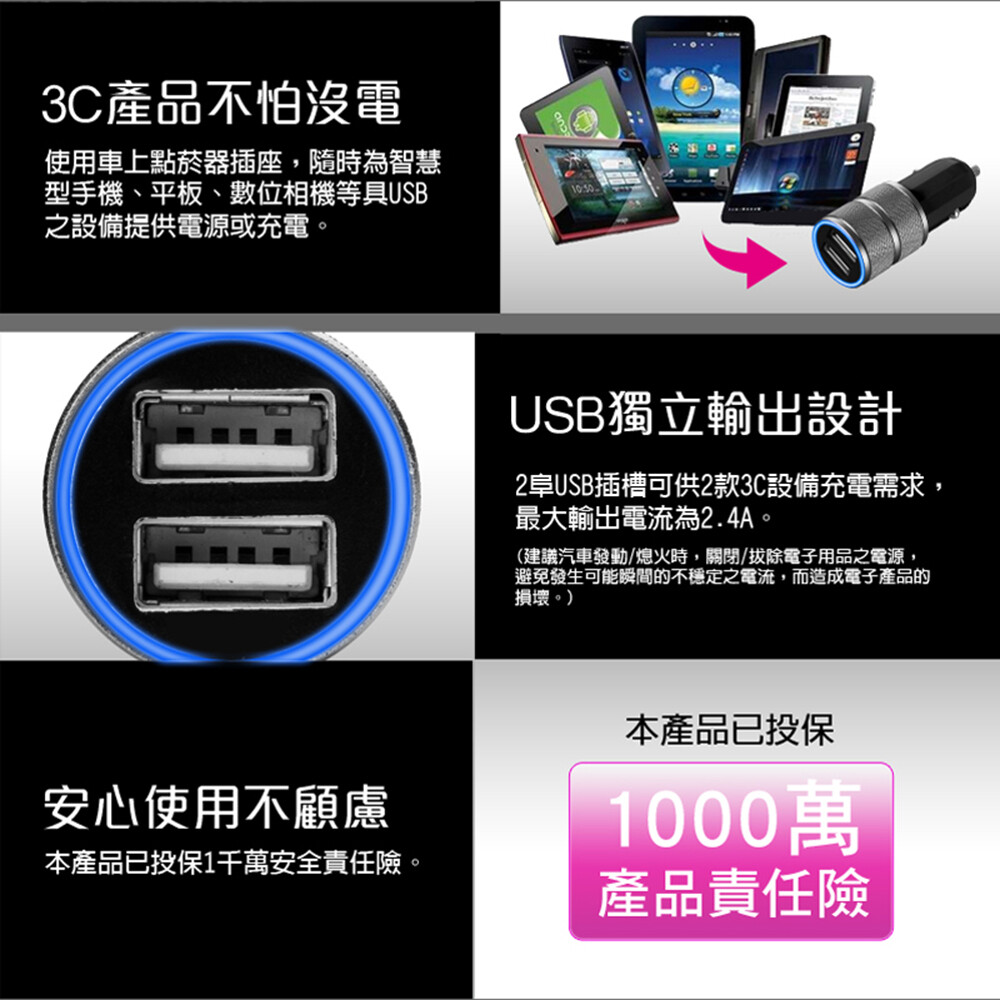 使用車上點煙器插座,隨時為智慧型手機、平板、數位相機等具USB之設備提供電源或充電,適用多種設備