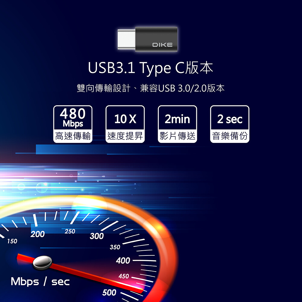 USB3.1版本:480Mbps高速傳輸、10X速度提昇,向下兼容、支援熱拔插