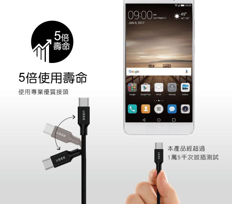 .強韌編織布與TPE組合,線身不易斷裂更耐用