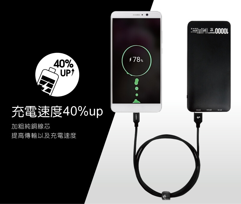 .加粗純銅線芯,提高傳輸充電速度40%up