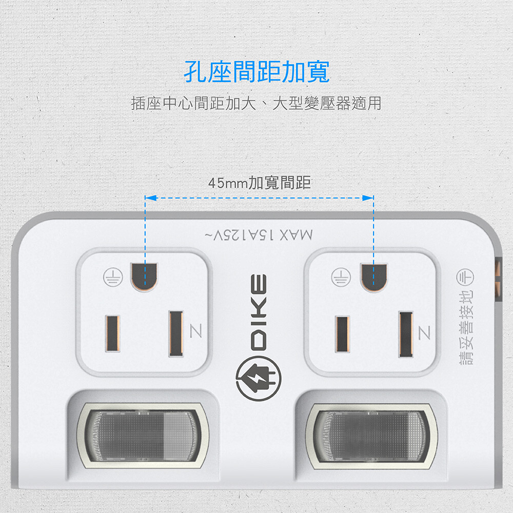 ■ 超大插座間距:45mm超大插座中心間距、便利插拔、插頭不卡不打結