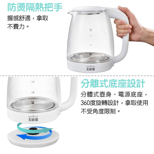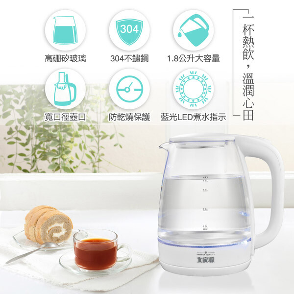 大家源 1.8L晶瑩玻璃快煮壺 TCY-261802