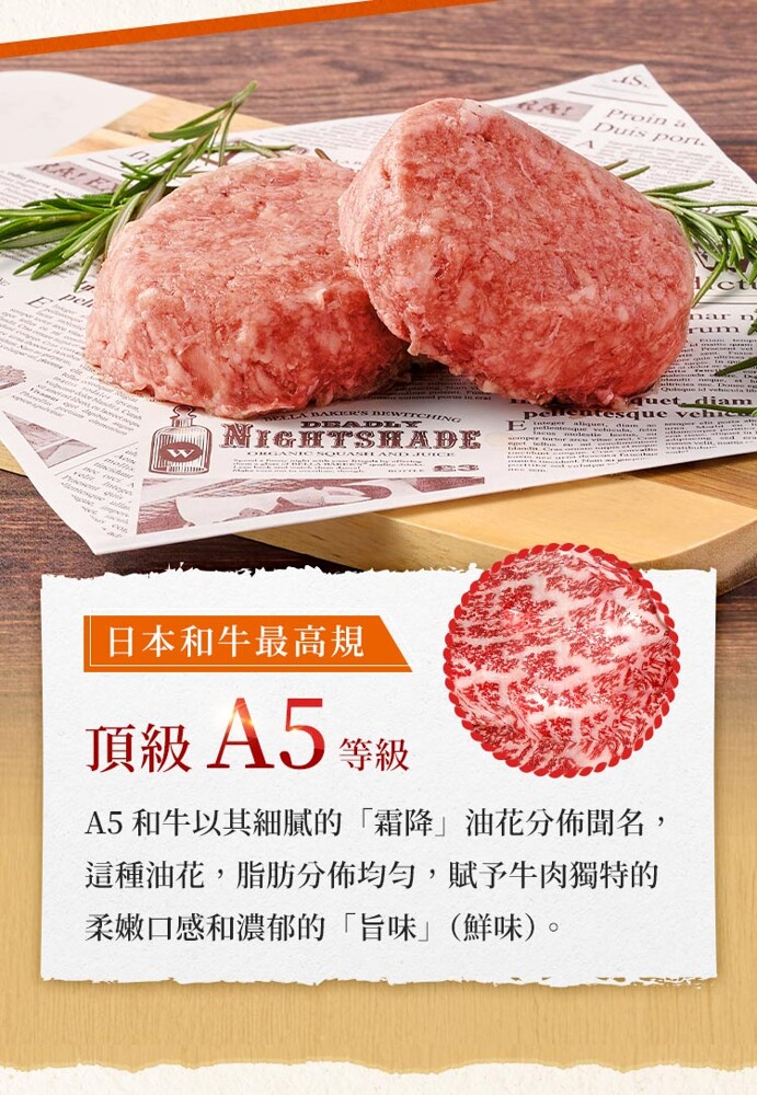 商品成份:A5和牛(日本熊本縣、宮崎縣、鹿兒島縣)、牛肉(澳洲)、牛肉(美國)、鹽、糖、洋蔥、黑胡椒