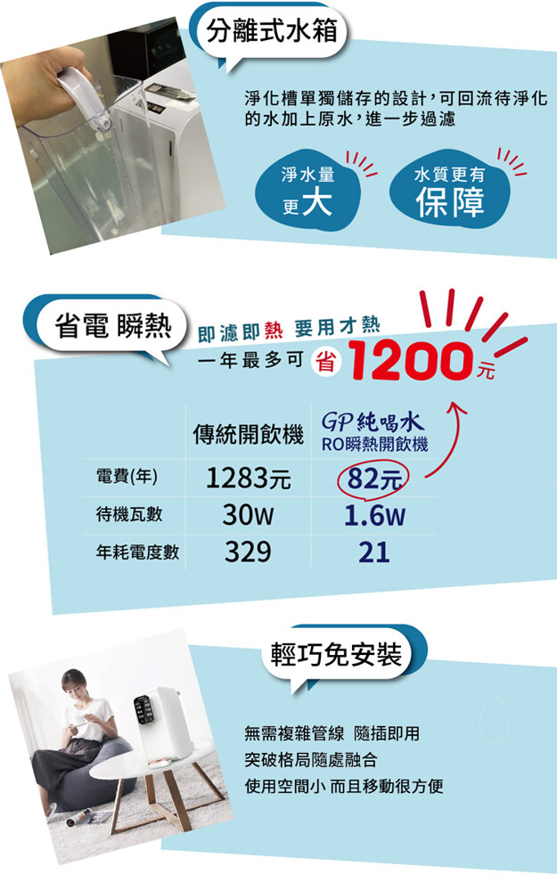 【G-PLUS 拓勤】GP純喝水-RO移動式瞬熱開飲機+另外贈送PAC+CF濾心組(附SGS多項水質檢測證明)