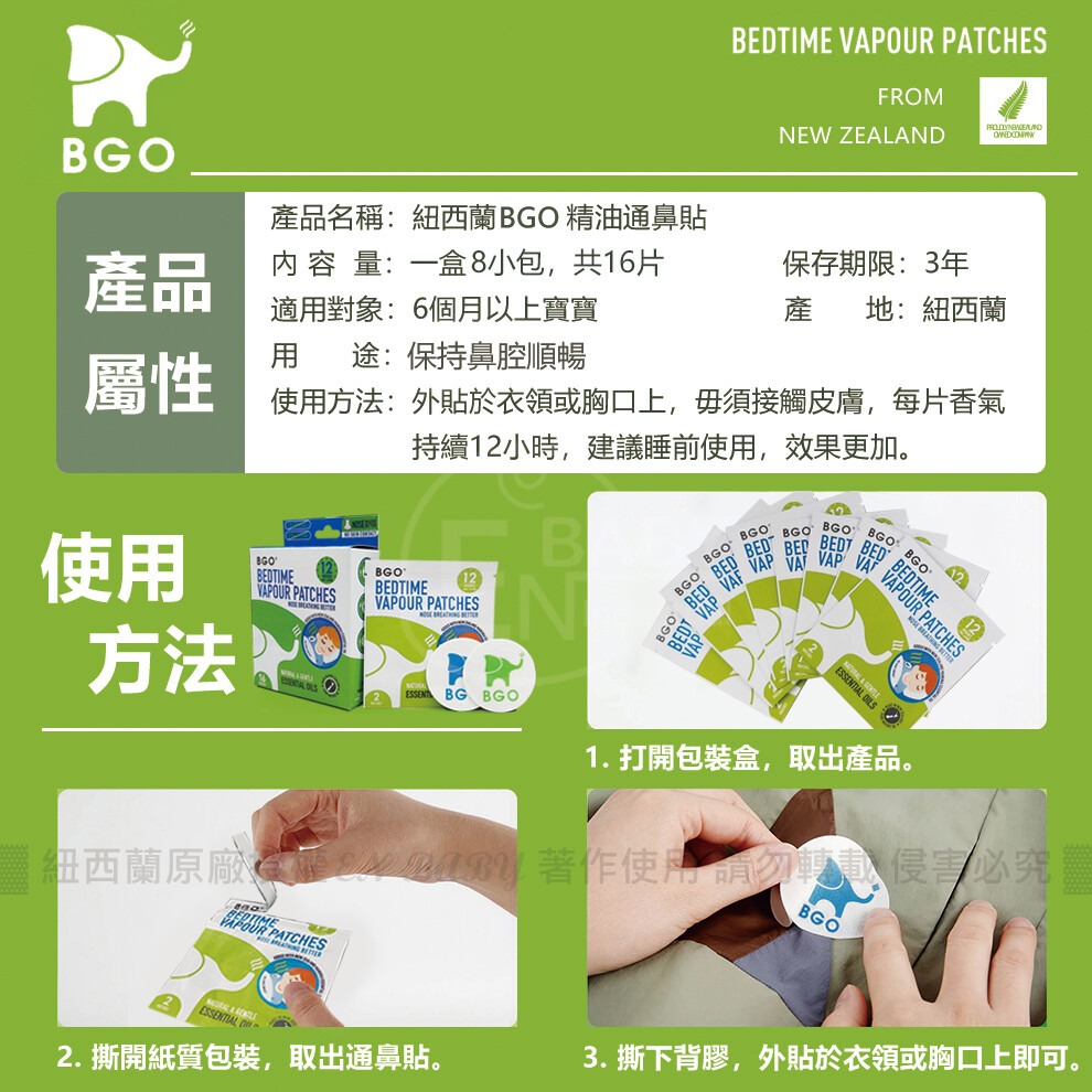 睡不好寶貝的大象好朋友,紐西蘭 Beggi BGO精油通鼻貼