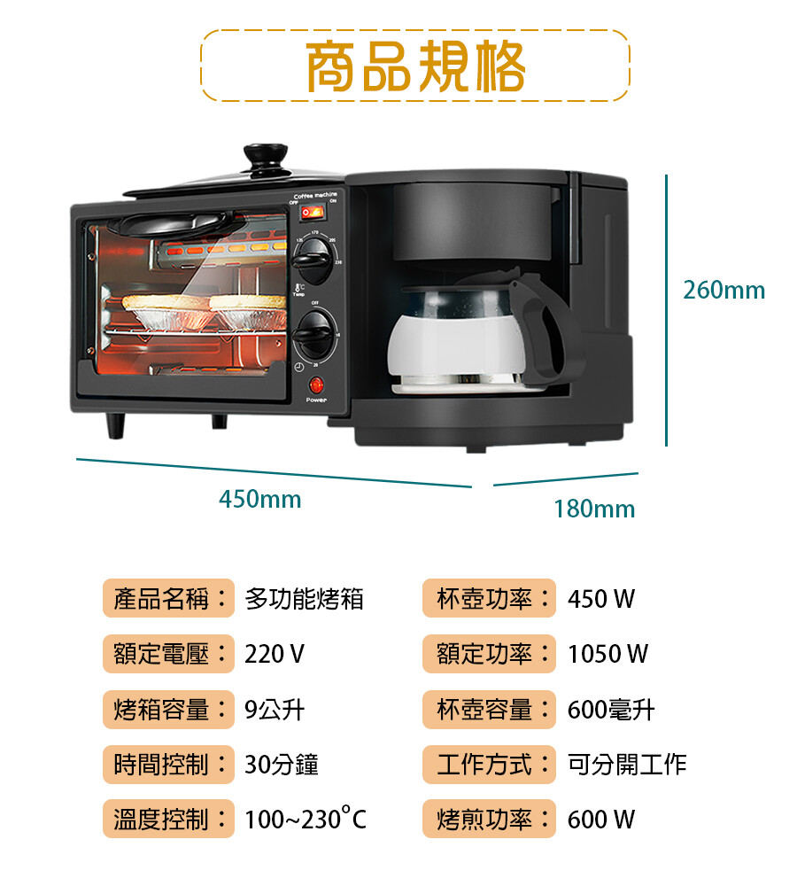 💫不沾煎盤💫獨立咖啡機💫9L電烤箱💫恆溫烘培💫