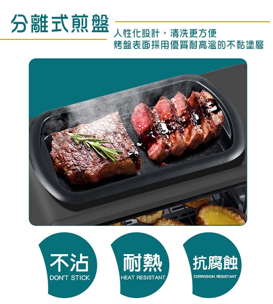👍搭配不鏽鋼分離式烤盤,輕鬆烤煎各種食材