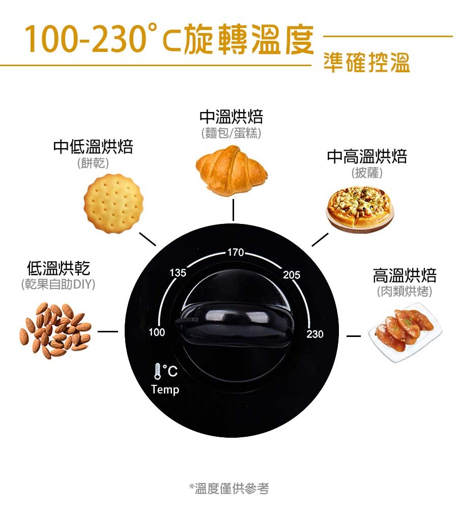 ◗最高230℃調節旋鈕,可控制烤箱/烤盤溫度