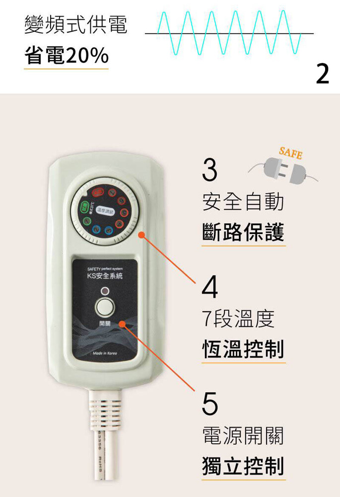 *電熱毯開關請置放於通風處,勿放置於棉被中,以免散熱不良燒壞元件