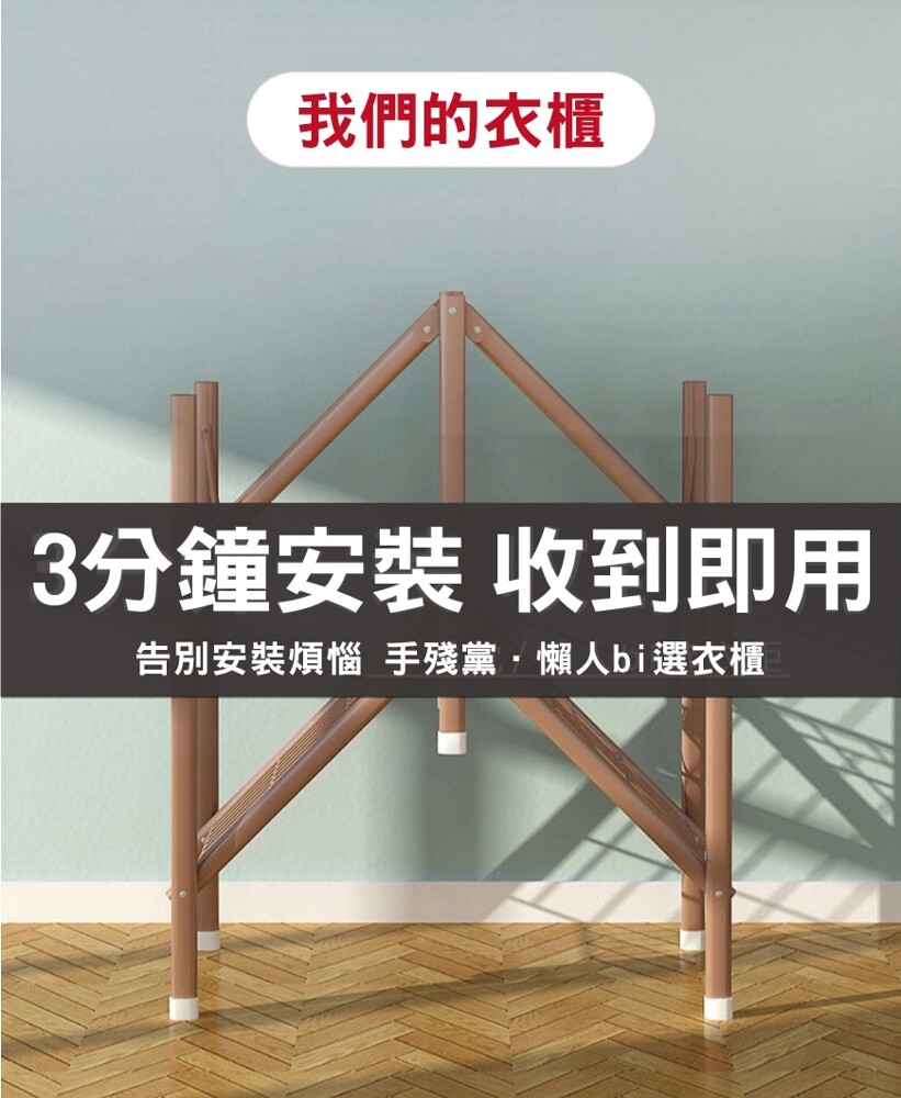 加粗耐重免安裝折疊衣櫃,有別於一般鎖螺絲的簡易衣櫃,不耐重且組裝繁瑣
