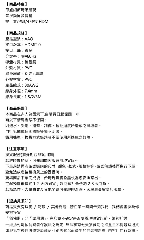 線身長度:1.5 / 2 / 3M