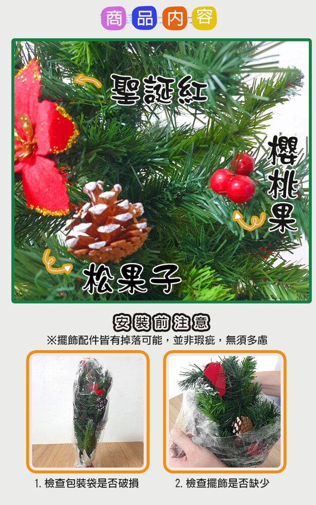 名稱:【COMET】2呎松果+櫻桃+聖誕紅葉聖誕樹(CTA0035)