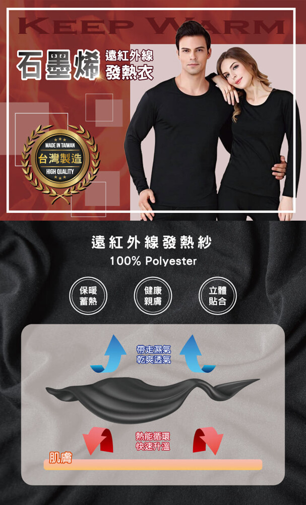 商品:MIT台灣製 石墨烯遠紅外線發熱衣(男/女款)
