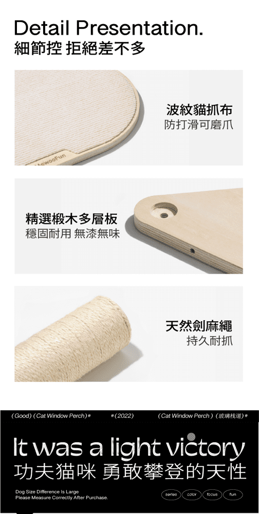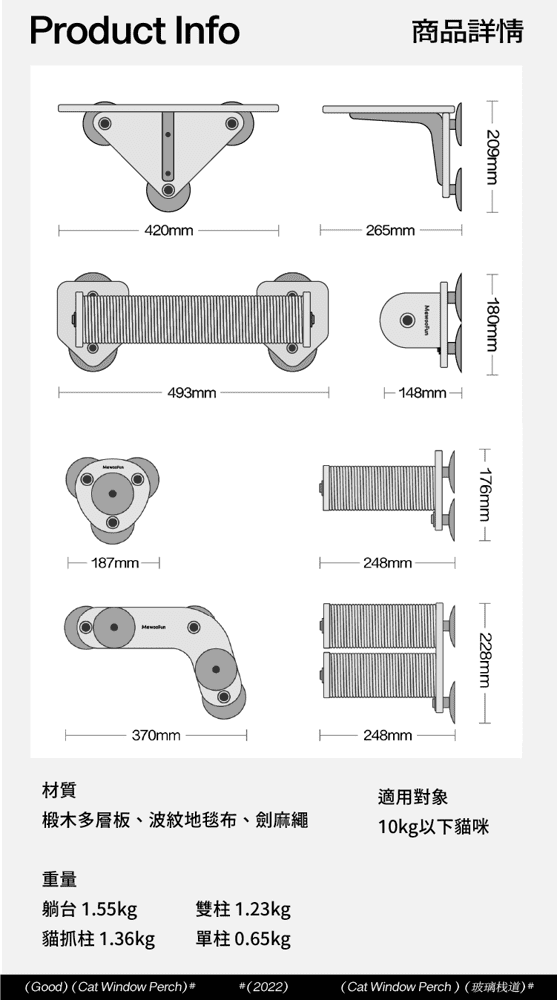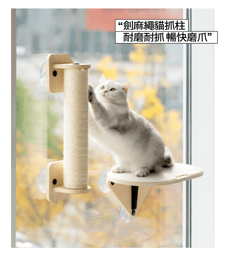品牌:喵乎汪也 品名 : 雲中漫步吸盤式貓跳台 (貓抓柱) 貓抓住規格 : 49.3*14.8*18 cm / 重量 : 1.36 kg 適用 : 貓貓 有效期限:正常使用無使用期限 注意事項:遠離熱源 生產國:中國