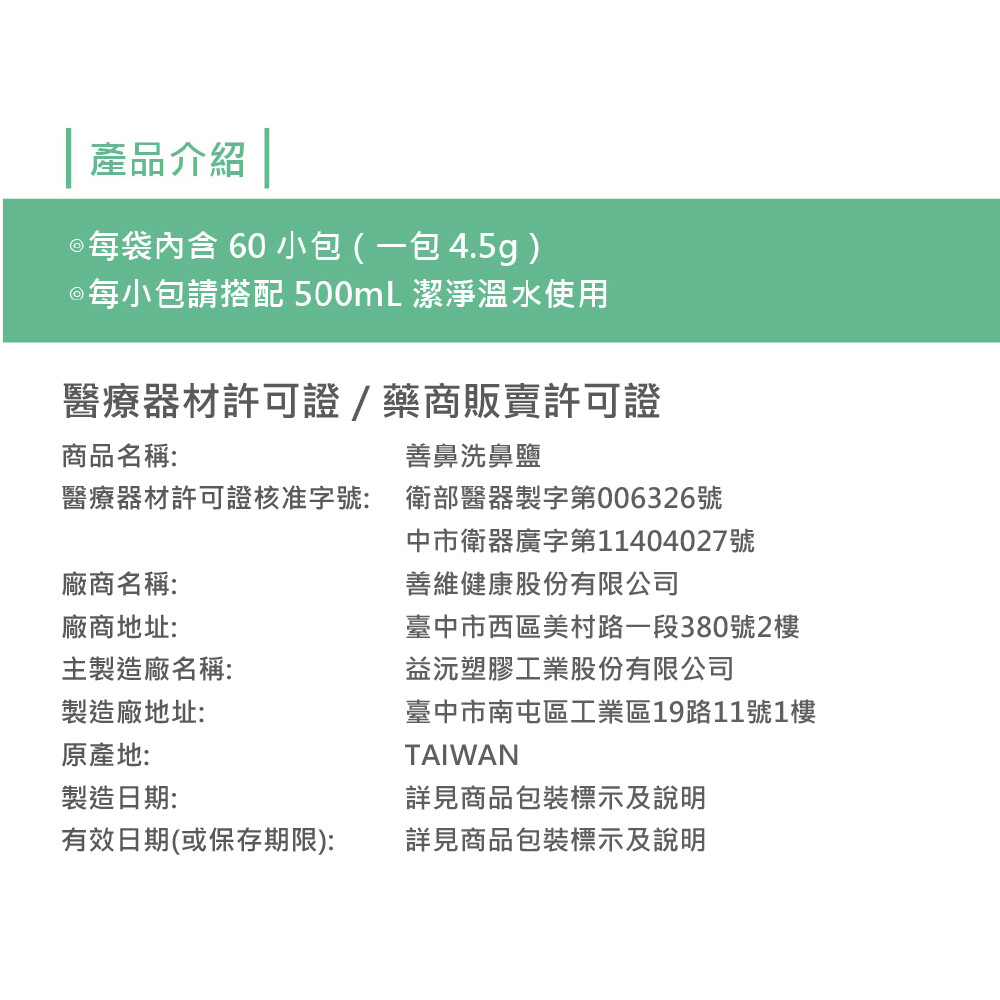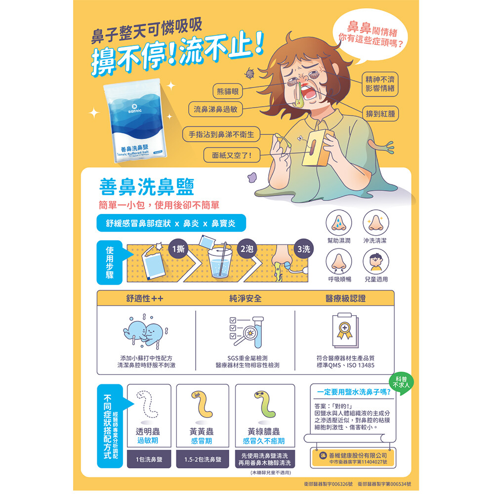 來而康 Sanvic 善維健康 善鼻洗鼻鹽 NS01 洗鼻專用 洗鼻鹽 4.5gX60包/袋
