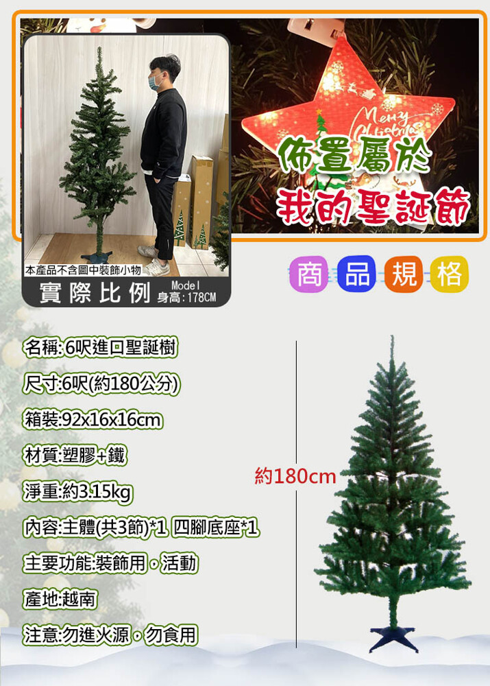 名稱:6呎進口茂密擬真聖誕樹(CTA0046)